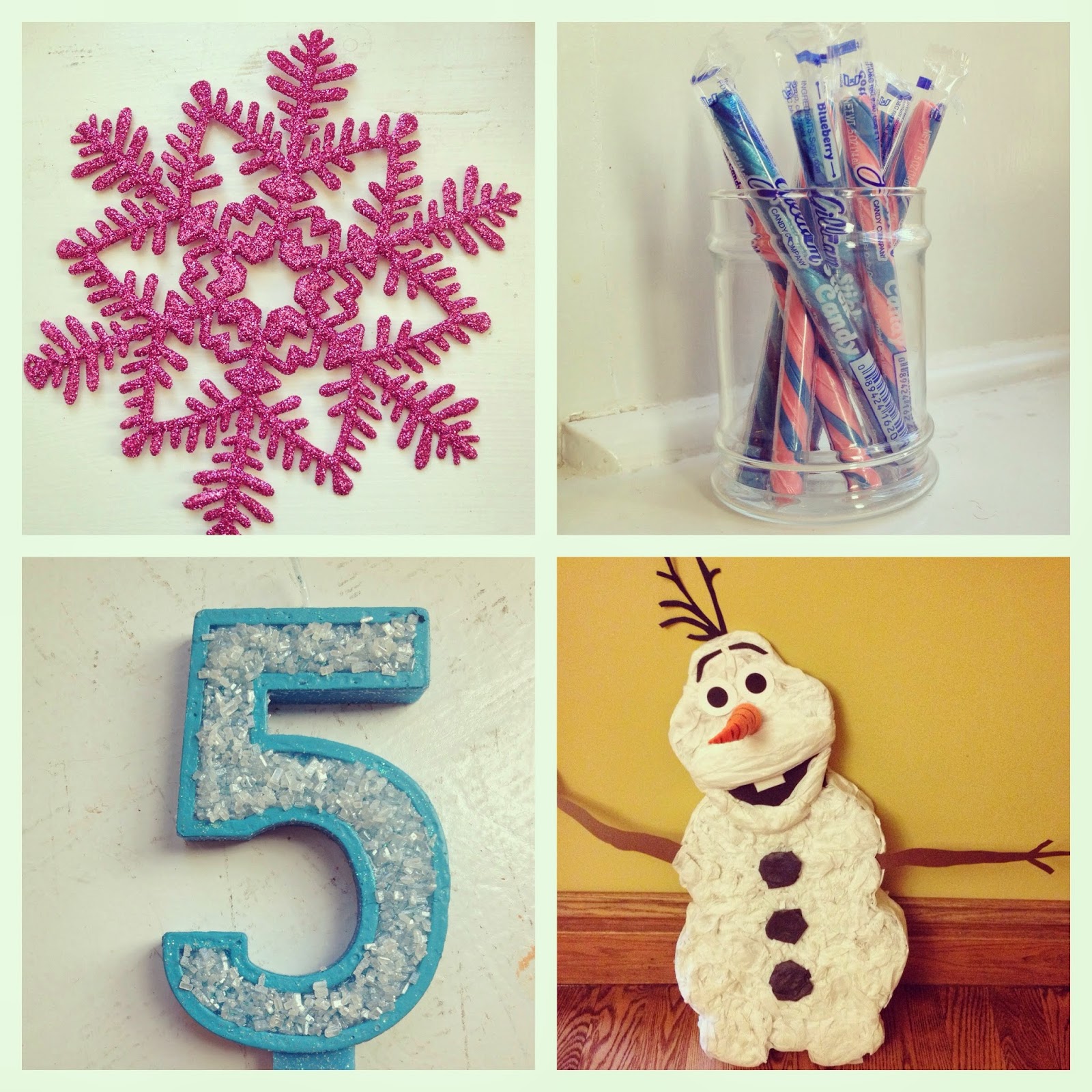 I was surprised when I went out to gather supplies for our little party that "Frozen" stuff is actually really hard to find. Luckily, her only real request was that there would be an Olaf piñata. I knew I could make that and then mix in other items to fit the theme.
